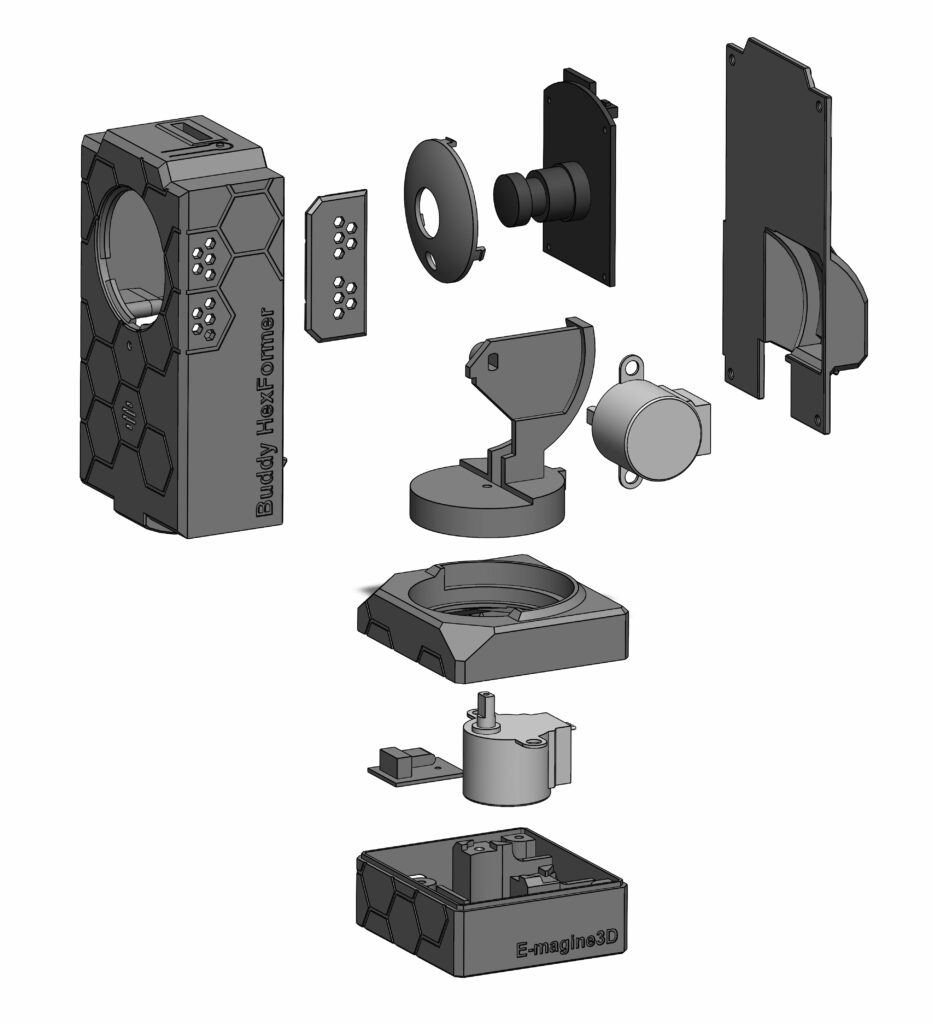 The Prusa Buddy camera is a powerful tool for remote print monitoring through Prusa Connect, but its original housing is fairly utilitarian. With the Buddy Hex Former, I redesigned the camera case to improve both aesthetics and usability, while remaining fully compatible with the original Prusa hardware.